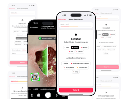 Akute und chronische Wunden direkt am Ort der Behandlung effizient dokumentieren, kategorisieren und präzise vermessen (Breite, Länge, Umfang, Fläche).
