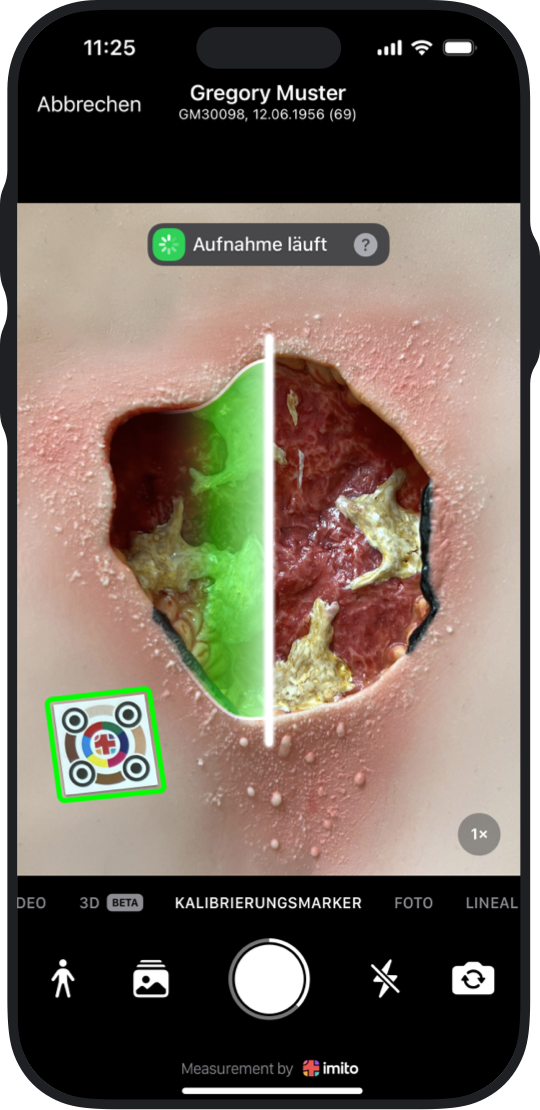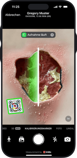Erhalten Sie eine sofortige, präzise Wundflächenberechnung anhand eines einzigen Fotos. Wählen Sie die Kalibrierungsmethode, die zu Ihrem Arbeitsablauf passt: