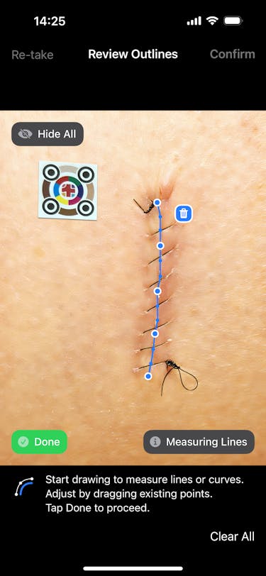 Immediately after you take a photo of a skin anomaly or wound, imitoCam can automatically calculate its width, length, circumference, and area. imito’s measurement method is scientifically validated.