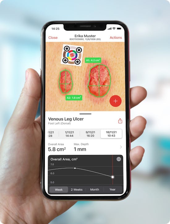 When you want to measure flat wounds contactless, accurately, and quickly. You can find detailed instructions on how to measure wounds with our calibration markers here.