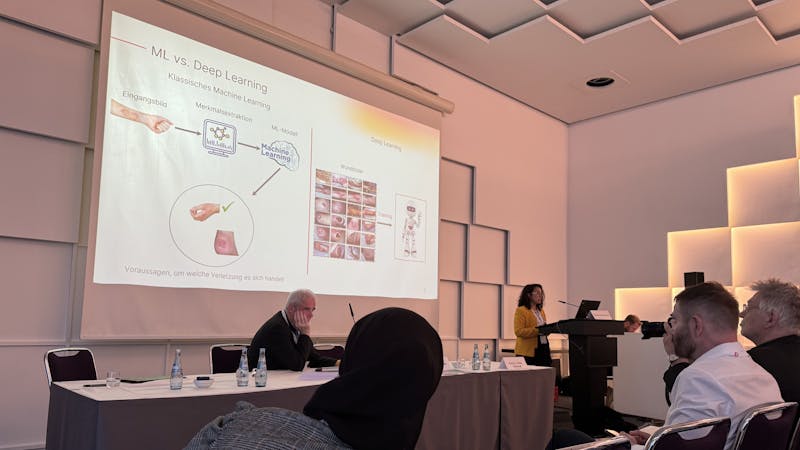 A special highlight this year: Adriana Godrid was part of the series of lectures on the overarching topic (W62) Fields of application of artificial intelligence in wound care: At which corners can AI make the difference? On Thursday, visitors were able to learn more from her about image interpretation via AI: State of the Art or "Are we internationally left behind?".