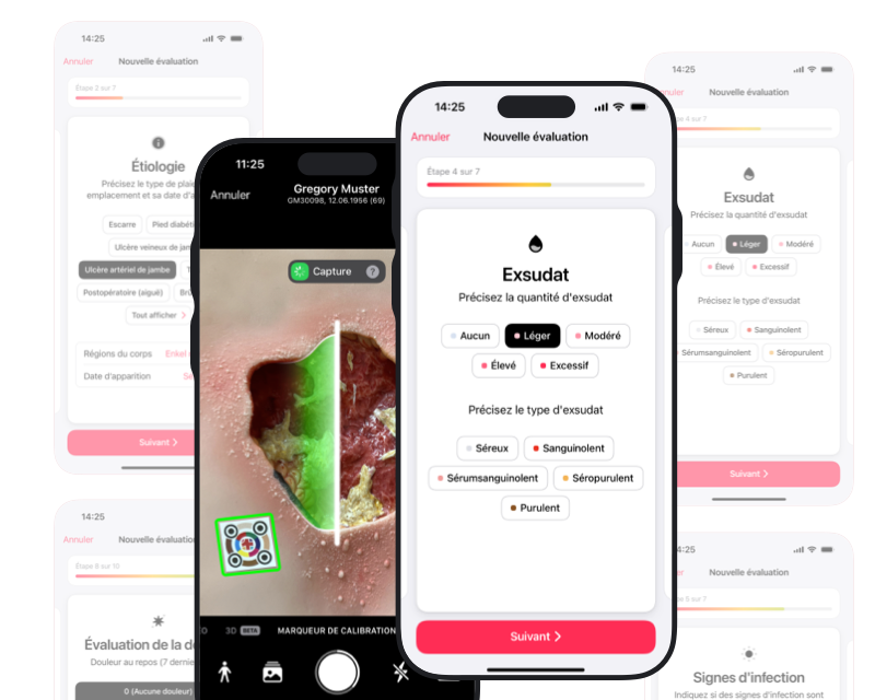 Documenter, catégoriser et mesurer précisément les plaies aiguës et chroniques directement sur le site de traitement (largeur, longueur, circonférence, surface).